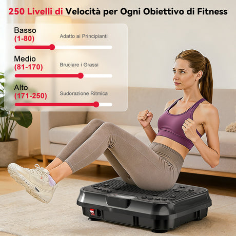 Pedana Vibrante Fitness F1, 250 Livelli di Intensità