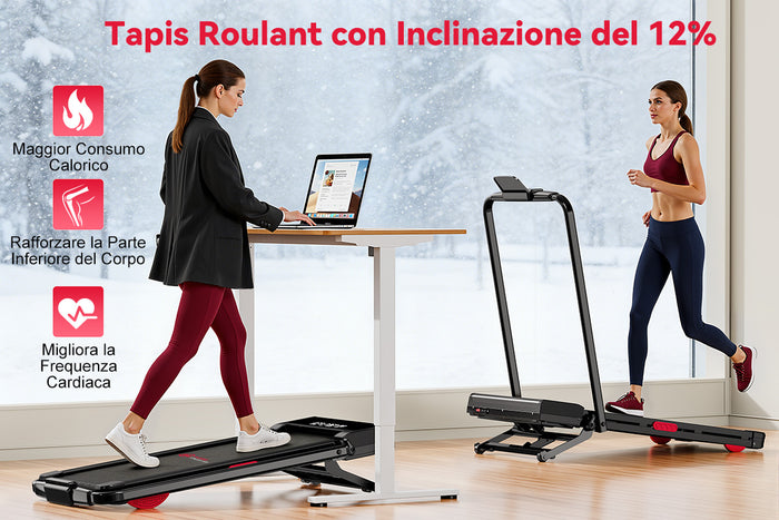 Tapis Roulant Pieghevole Y3 con Motore Brushless, Inclinazione Automatica del 12%