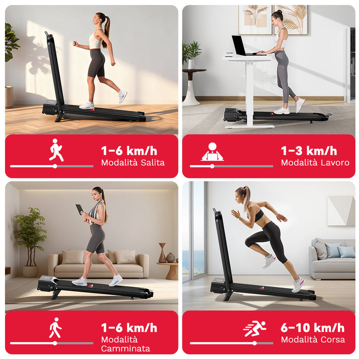 Tapis Roulant Pieghevole C1, Velocità 1-10KM/H, 5% Inclinazione Manuale